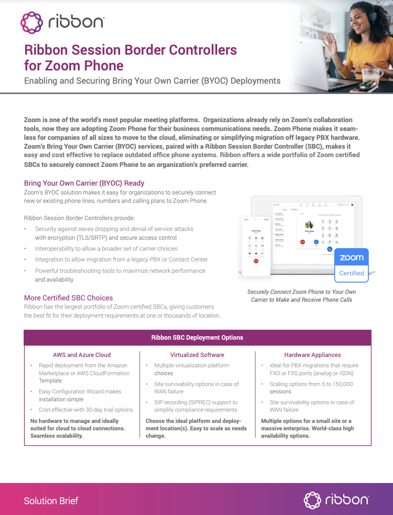 Ribbon | Accelerating carrier enablement of Zoom Phone BYOC